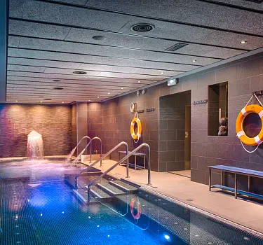 El circuit spa disposa de pediluvi de còdols amb vint difusors d'aigua i cromoteràpia que millorarà la teva circulació, dues dutxes (Nebulitzada i sensacions) l'objectiu de les quals és activar la circulació de totes les parts del cos, un Frigidarium on poder gaudir de la cascada de gel en sortir de la nostra sauna o del bany Turc i poder així variar la teva sensació tèrmica.